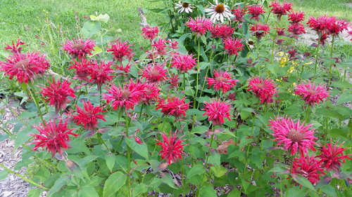 Bee balm. The taller “Oswego tea” kind. Everything loves this stuff.