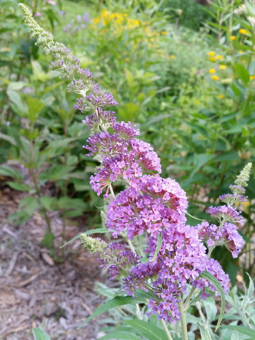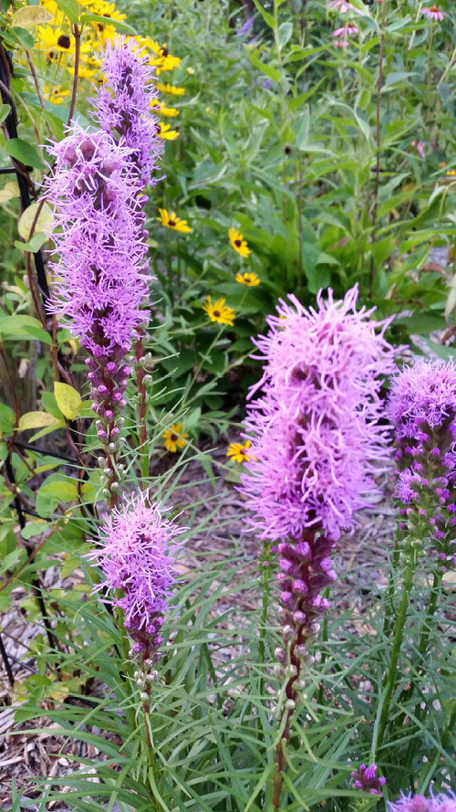Liatris that I’m surprised hasn’t drowned. The stuff in the concrete bed hasn’t bloomed yet, and it’s taller. Bees don’t care how tall it is; they love it however it grows.