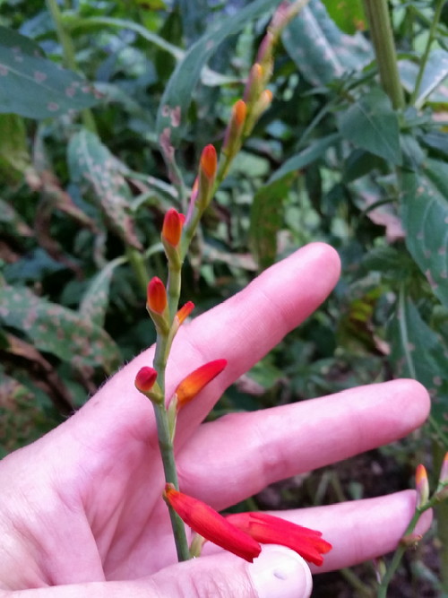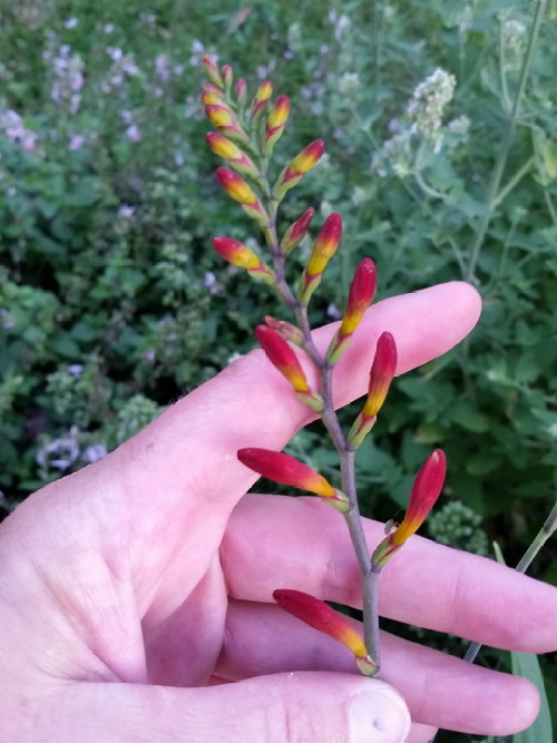 Red and orange crocosmia coming along. Actually some blooms now; again, because it’s taken me so long to post.