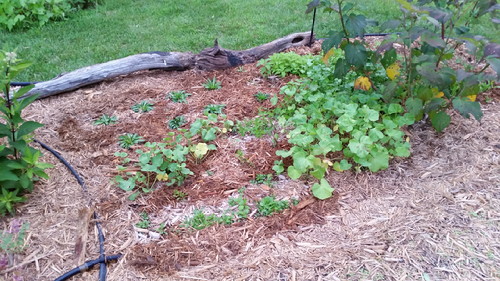 Since I took yesterday and today as vacation days, Wednesday was my Friday. I was too tired to do much, but did install soaker hoses in the swamp part of Sarah-Flah’s garden. We may be getting a lot of rain now, but it’s not July yet, either, and lobelia likes wet feet.