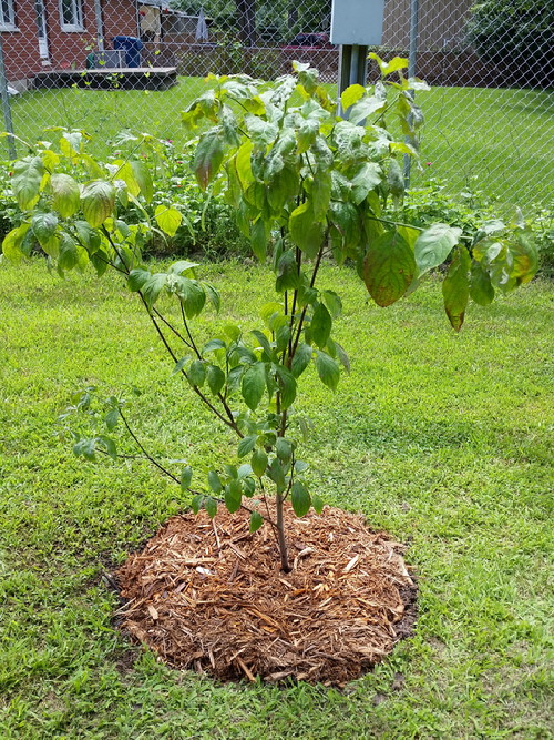 My big accomplishment yesterday was planting my last dogwood. I put it over on the south side, hoping to block the view of the ugly utility pole.