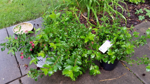 That would have left me with only the Sonic Bloom pink-that-is-red that I got for 40% off left to plant, but I went to Buchheit after I stopped in to work for a little while, and their green stuff was all 50% off, so I got two Java Red weigela, and two Minuet weigela. No idea where to put them, but I’ll think of something!