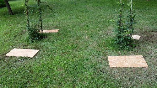 I covered the holes with scrap plywood and aspenite; I may not like Charlotte eating my trees and flowers, but I still don’t want her to break a leg.