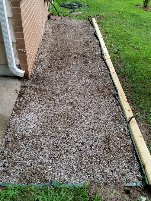 It rained this morning, and after it finally stopped, I weeded the gravel path. Took out two buckets full, and that’s two buckets mashed down as hard as I could. Lots of crabgrass.