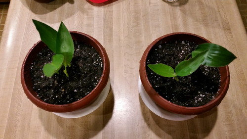 I took a well-deserved nap, and when I got up, it was too late to do anything much, but I did finally put my long-suffering Strelitzia in pots. Reginae on the left (3 plants), Nicolai on the right (2 plants).