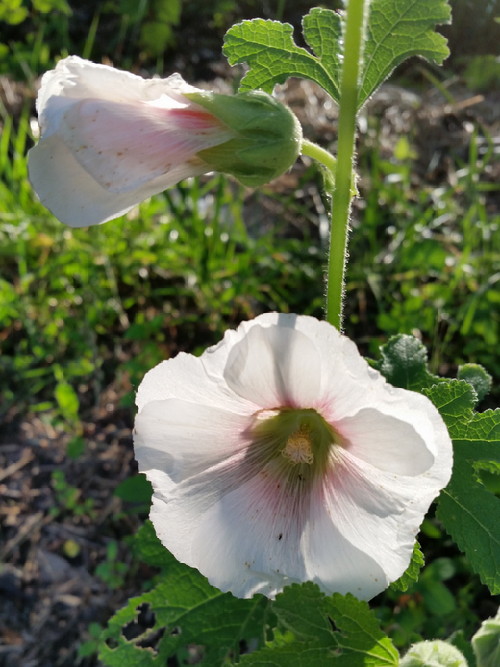 My poor, put-upon, bug-eaten, deer-munched, under-sunlit hollyhock.