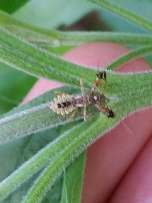 Bad light, tiny subject. A baby spined assassin bug. Cute!