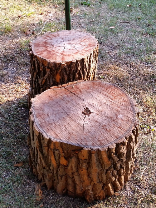 My new steps! D was out mowing his front lawn, so I went over to ask whether he’d sell a couple of pieces of that big old osage-orange that had fallen last March. P had asked him months ago, and he said that he’d given the wood to someone who has a wood stove, but he’d been mowing around them long enough that I thought maybe he wouldn’t mind selling enough for me to make my bird feeder steps. Not only did he not mind, but he absolutely refused money, and even rolled them across the street for me! Anyway, now I have cool new steps that aren’t ugly concrete blocks, and though they are wood, they’re big chunks of osage-orange, which will be going strong long after I’m dead and gone.