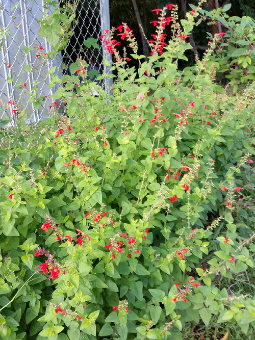 Zinnia kind of took over the fence, but wherever there was room, the scarlet pumpernickel did well.
