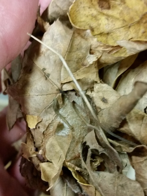 EDIT: I dug around in the container of dead leaves tonight, and I found my little dude! His cocoon is barely visible, but I know he’s in there, and I can’t wait to meet him in his new form!