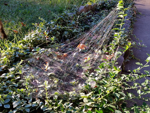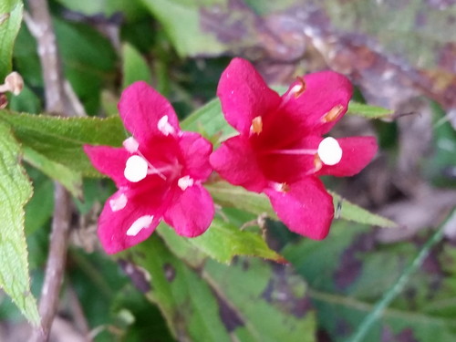 I watered the weigelas last night, and this little trooper had two flowers on it…in September. I think it’s Sonic Bloom pink-that-is-red. It’s the one by the bedroom window.