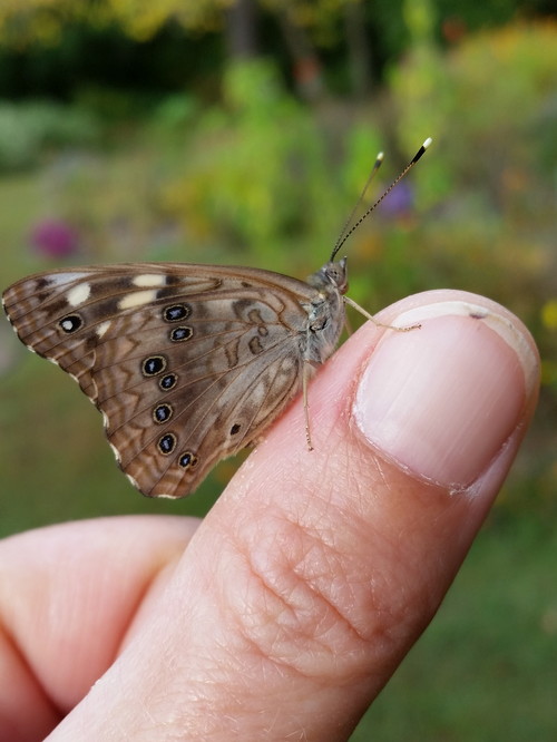 I had company as I decided where to put the asters; I found him on the screen door. I don’t know whether he was cold or just liked my hand, but he wouldn’t leave. This is also the final photo that includes the black spot on my thumbnail where I hit it with my garden hoe/fork/whatever it’s called on the first day I really worked in the Bistro. April, I think…I was enlarging the cosmos bed, knocking dirt off grass roots.