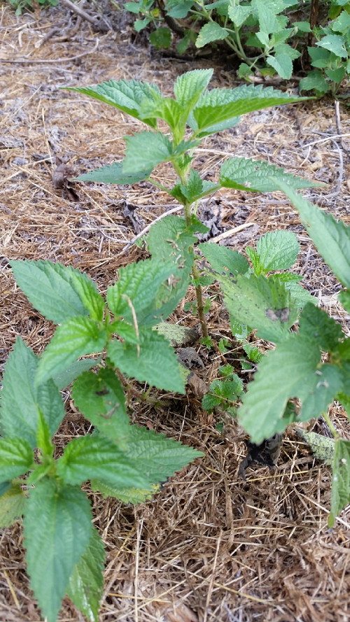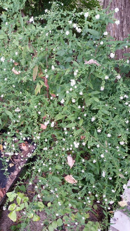P said that he didn’t want to spend a couple of hundred on a chain saw that we’d rarely use, so he went off in search of a big axe, and I planted asters while he was gone. I’ll put asters in today’s entry because I still have three left to plant. Most of them ended up in the Bee Happy bed because of the drainage, and I also identified the plant in that bed that had made me itch. Well, I didn’t; FlowerChecker botanists did. Stinging nettle!