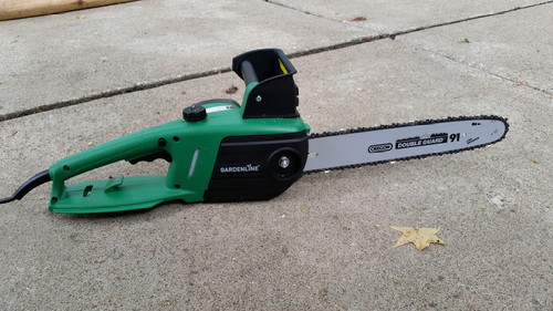 That little saw is perfect; no mixing gas, no maintenance before storage, no waiting for a battery to charge…plug it into the 100′ cord and fire it up! It weighs next to nothing, and has enough power for anything I’m likely to do. I need something to cut the odd and sundry branch, and bush honeysuckle that’s too big for my big lopping shears; it’s not like I’m going to be doing any logging with it.