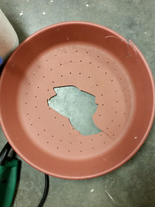 In good news, it managed to fall not on the roof, or in the flowerbed, or in the pond. It just missed the flowerbed and the pond by inches.