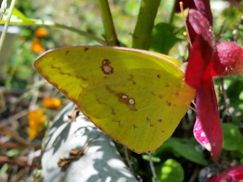 Cloudless Sulphur, face-first in the flowering tobacco that was nearly dead, but revived nicely after I repotted it.
