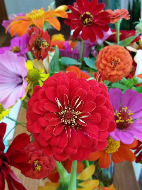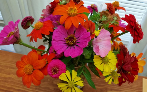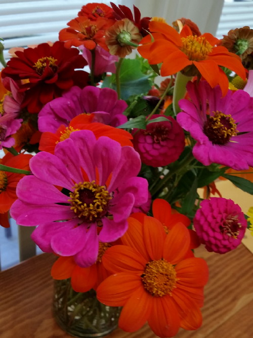 We didn’t get frost, or if we did, it didn’t do much damage, but I’m still glad I brought flowers inside. I can look at this and other photos in the dead of winter, and remember that spring will come.