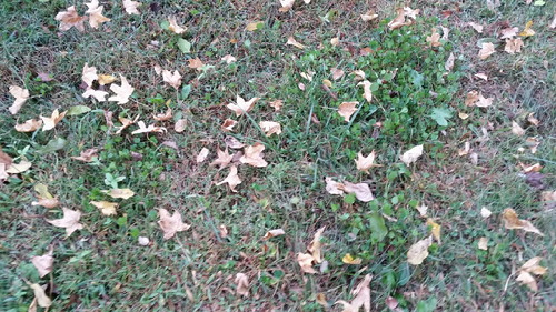 While I was deciding whether to integrate my crocus bulbs into the part of the lawn that I built up when we moved here, I discovered that the few little spots where I’d pulled up witch grass and seeded clover finally grew! I’ve mowed there lots of times and never noticed.
