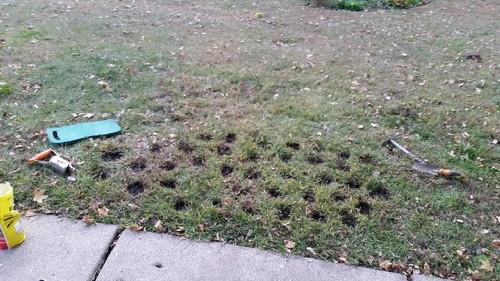 Okay, so “crocus” comes from Greek, not Latin, but I think “croci” is funny, so they’re croci. I soaked the soil well yesterday and they all went in easily, except two where I ran into an osage-orange root (HOW!?!?) There were supposed to be 40, but there were actually 38-3/4; 38 that looked really good and one that may or may not grow, but I planted the little dude anyway so he wouldn’t be left out.