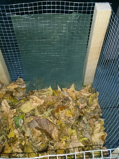 I was getting concerned about keeping the Spicebush Doot-doots and Luna-to-be indoors with artificial heat and light, when I need them to stay in their little sleeping bags until spring. I’d got 2x2s on Monday (even if RP actually delivered the lattice, cedar board and 2x2s to D’s across the street and I didn’t find out until I called yesterday!) and got hardware cloth yesterday, so I decided I had time after work to build the enclosure so my dudes will be safe from hungry mice/raccoons/whatever eats them.