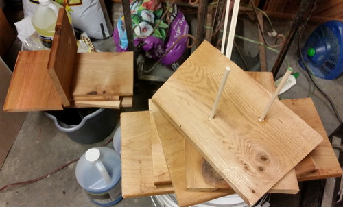 I had to do laundry, so I didn’t have time to build a hoce from start to finish. I did, however, have time to cut the pieces for two hoces. I mixed it up a bit with these; one has a 1.25″ hole, and no perches. The other has a 1.5″ hole, but only two perches. It’s a fatass hoce, just in case some of my birds have packed on a few. I’ll assemble them when I get home tomorrow (Friday!), and then, I’ll have only one left to build, plus whatever I decide to make with the leftover bits.
