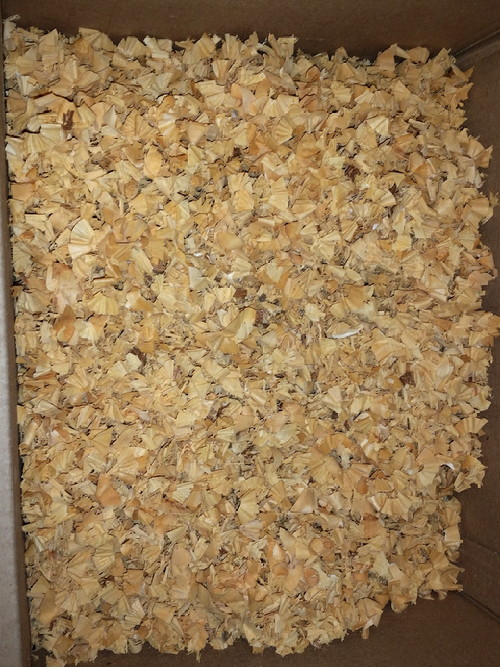I forgot to take a photo after I’d finished the crabapple plug feeder, but this is spade bit shavings that I’ll use for bird hoce bedding. Smells nice!