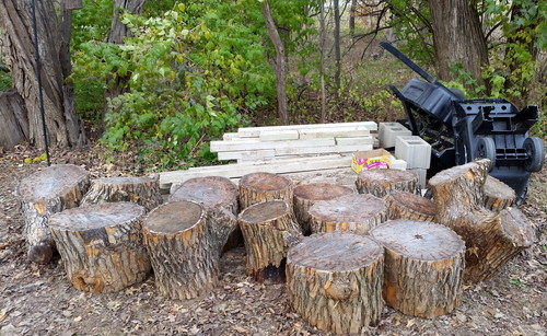 I also straightened up the sandstone pieces, and moved the osage-orange over. Very hard work, but looks a bit better.