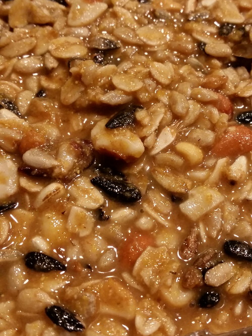 EDIT: Next day. I cut the cold tallow into bird biscuits. Kept a few in the fridge for the next batch, and put the rest in bags in the freezer so the little skim of agar-looking gel doesn’t go mouldy.