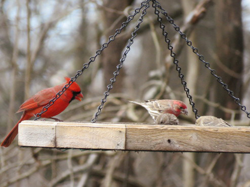 Cardinals and house finches came for black oil sunflower.