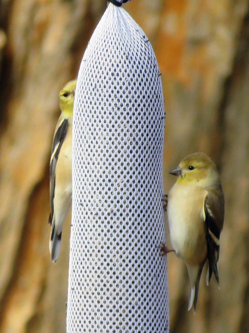 I’d put fresh nyjer in the Goldisox’s sox, so they rewarded me with a game of peekaboo.