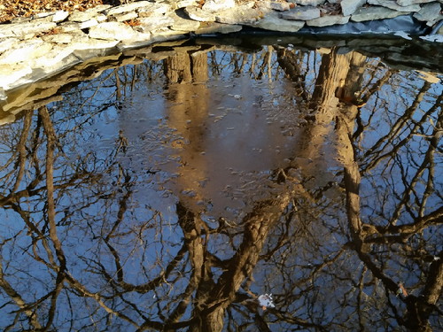 01-01-16 was the first time the pond had ice in it. It was out in the middle, so it didn’t affect the Babbling Brook, but colder weather is still to come. I really would like to find a way to keep the pump running because those little birds love their birdy-pool drinking spot. They’d use the main pond, I’m sure, but I want their pool open for business as long as possible. Not sure yet how I’m going to work that.
