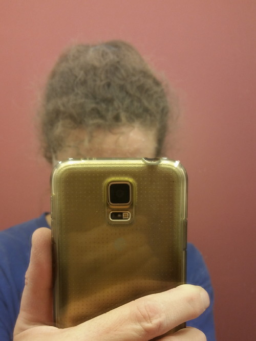 My hair was particularly glorious. It looked (and felt) like it hadn’t been washed in weeks. I had to use P’s shower on Saturday night, and I washed my hair twice. Ew!