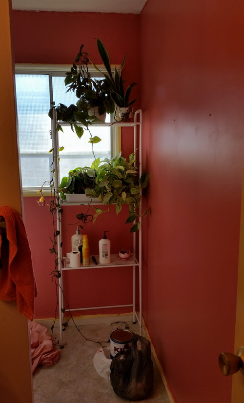 Making progress. It does make the bathroom look “different from” the rest of the house, which is all light colours, but I really do like the colours.