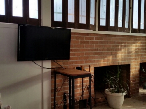 P was asleep Saturday evening, and I couldn’t sand because of the noise, so instead, I fired up Pink Power and mounted my TV in the living room. It’s easier if it’s mounted because then I can swivel the TV instead of my head when I’m lying on the couch, pinned in place by Miffy.