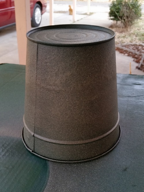 I’d drilled holes for hanging and painted one of the screaming Jesus yellow pots, and sprayed the inside with Flex Seal, but when I clear-coated, it wrinkled the paint. Fuck. I may or may not sand it and repaint. The other two I primed and painted with a textured finish (one green and “sandy”, the other the sienna granite finish I used on the tabletop in the Palm Room).