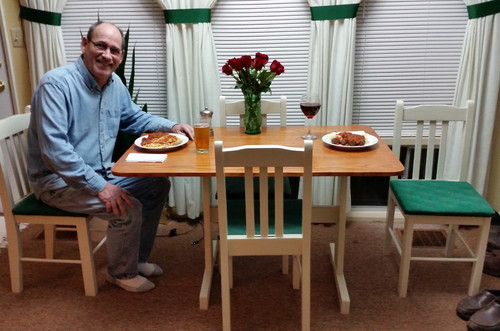 I made spaghetti and meatballs for supper–that was what he wanted for birthday supper–and did the meatballs in the new oven, which worked well.