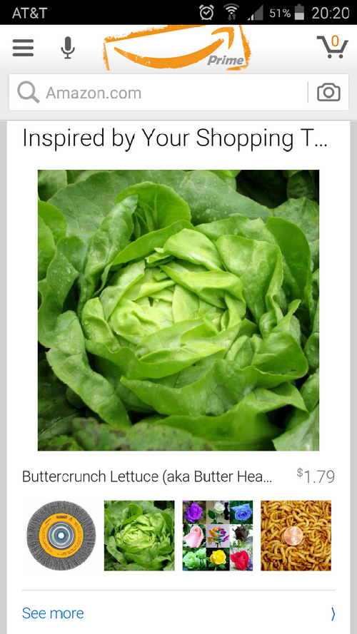 What do buttercrunch lettuce (presumably seeds), flowers, mealworms, and a wire brush for an angle grinder have in common? Me.