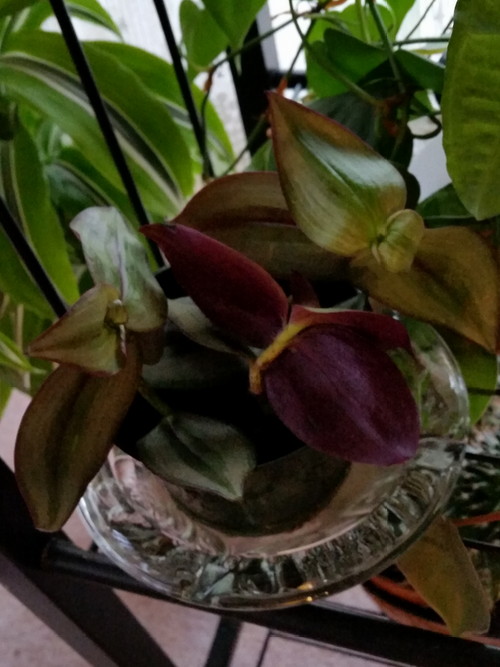 Thanks to the fancy multi-species pots at Buchheit,  careless shoppers,  and the brittle-stemmed habit of Tradescantia zebrina, I got a free plant. Three bits is enough as long as I don’t let it dry out!