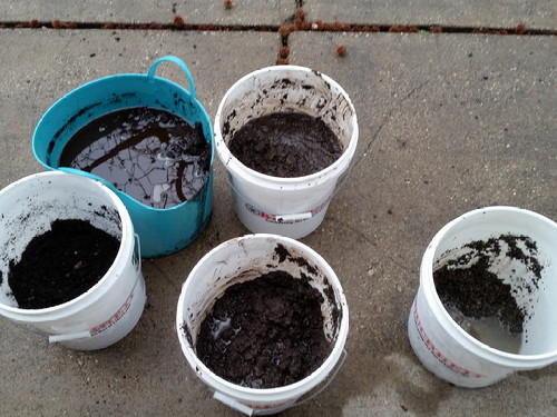 I expect the plants for the 55 to arrive some time this week, so I got the soil mixed and put into the tank. Mud pies!