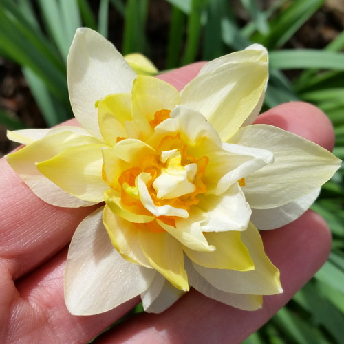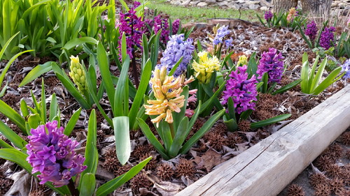 The mystery flowers that didn’t bloom last year and have buds that look “onionish” are… Narcissus! Actually double-bloom narcissus. I kind of wish they were single because I like those best, but I’ll take pretty, free flowers however they come!