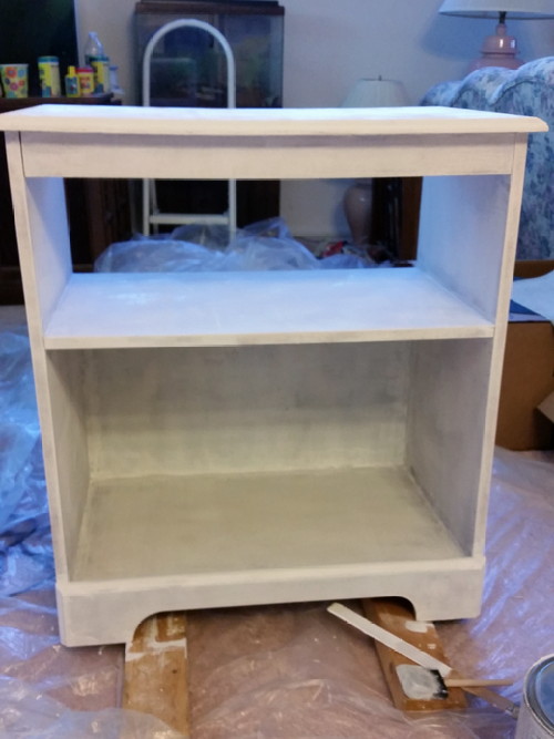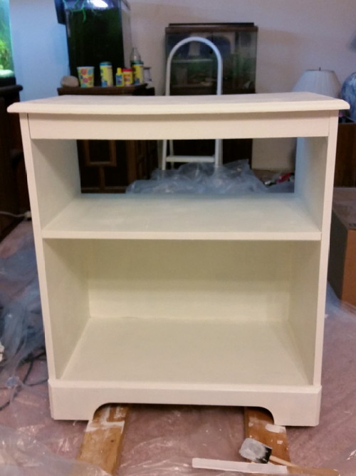 After practically killing myself to get rid of that goddamned honeysuckle on Saturday, I really didn’t want to do anything, but I’m close to done, so I sanded the printer cabinet.