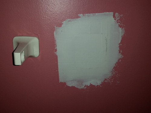 While I was making a mess in my bathroom, I decided to fix the toilet paper roll wall. I half-assed it when I was painting, but like everything half-assed, it didn’t hold. This will.