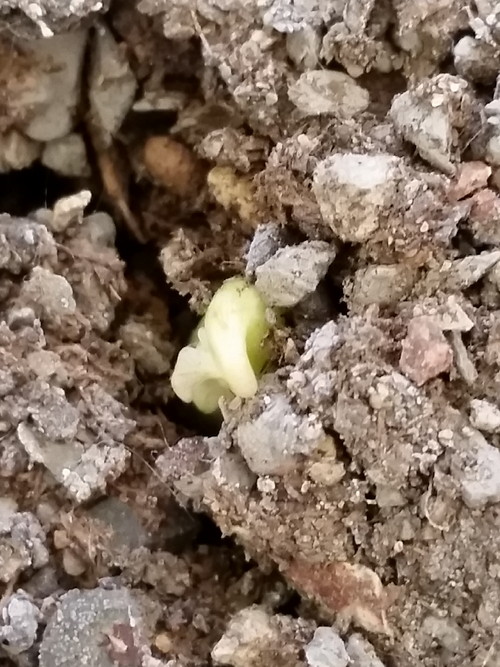 In “still indoors because taro is tropical” news, we finally have a tiny sprout.