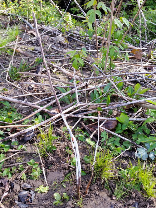 A lot of the stuff I planted last year down by the creek got choked out by Indian (turban, not bourbon) strawberry and other junk, but a few survived.