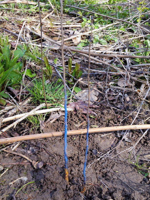 Red (pink?) paint: Purple lilac. I planted these by the old lady’s lilac so the little dudes would have company.