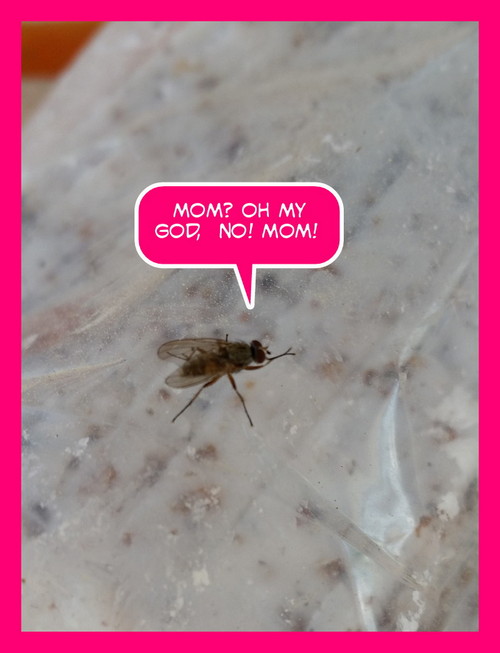 A fly landed on the Oregon suet…which is beef kidney suet, with flies. Heh.