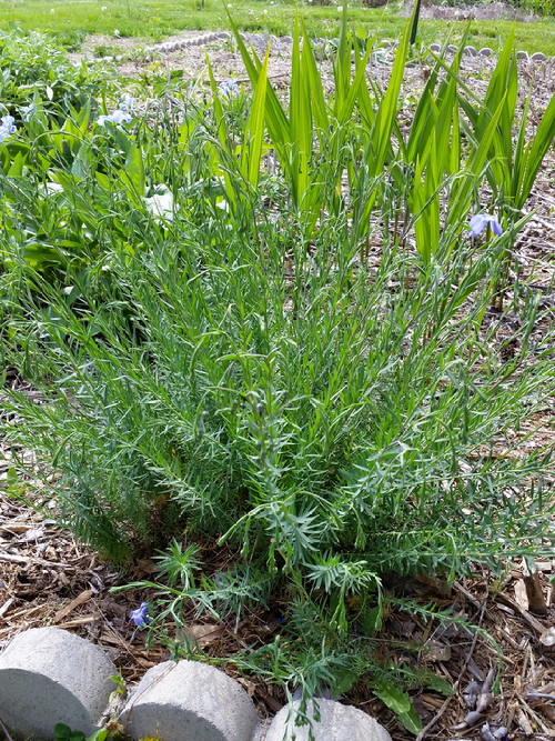 I finally identified the clump of greenery in the south flowerbed. I sort of remember planting blue flax last year, and apparently I did.