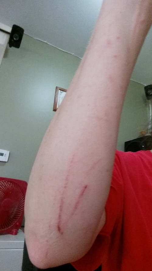 I finished tired, hot, sweaty, dirty, and scratched up, but I finished! I hate weeding and clearing dead stuff from that goddamned flowerbed, but it looks so nice when everything is in bloom that I have to do it.