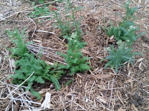 Well, two, but the second doesn’t yet exist, so I’m calling it one flowerbed left to plant. I finished the fence line yesterday with just enough of both dwarf butterfly bushes and scarlet pumpernickel seeds. I actually had one butterfly bush left, but I put it in the rectangular bed by the house. That’s also where I put the six yarrow.