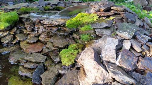 I topped up the pond, and since I had the hose out anyway, I pressure washed the stupid algae off the rocks. Not perfect, but better.